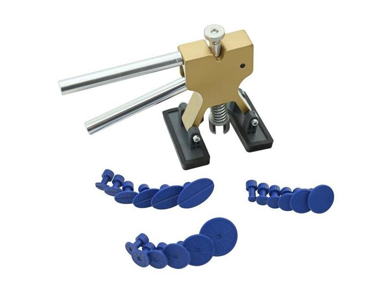 Sada obsahuje několik kusů plastových vytahovacích trnů různých rozměrů a tvarů. Trny jsou na karoserii umístěny aplikací lepidla z běžné tavné pistole (není přiložena).