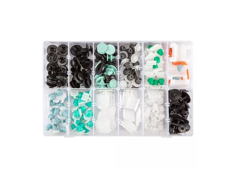 Sada manžetových knoflíčků do auta obsahuje 160 kusů manžetových knoflíčků. Manžetové knoflíčky se dodávají ve 12 různých tvarech, takže budou pasovat na všechny modely vozů Audi. Spony vyrobené z plastu usnadňují zpětnou montáž prvků čalounění. Jsou zabaleny v praktickém organizéru.