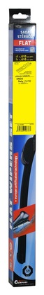 Sada dvou plochých stěračů FLAT (řidič + spolujezdec) se speciálním uchycením. Délky stěračů a systém uchycení na ramínko jsou přizpůsobeny vybraným vozům (viz tabulka použití).
