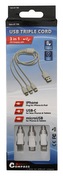 USB kabel 3in1 délky 75 cm. Kabel je opatřen konektory pro iPhone, microUSB a USB-C. Vhodné pro MP3 přehrávače, mobilní telefony a další zařízení, která se nabíjejí či napájejí běžným USB zdrojem 5V až do příkonu 2100mA. Technická data Délka USB kabelu 75 cm výstupní konektory microUSB,...