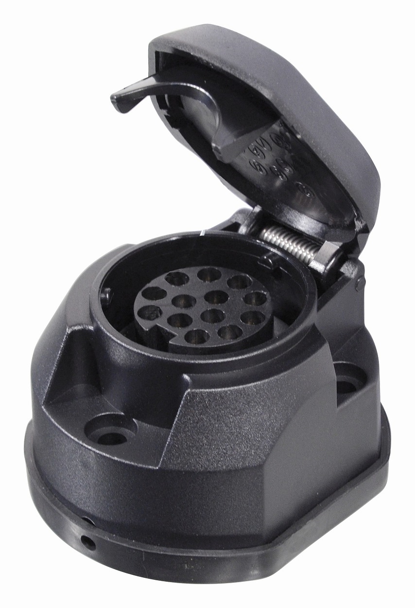 Zásuvka pro tažné zařízení automobilu dle normy DIN 11446, 13 pólů.
