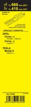 Sada dvou plochých stěračů FLAT (řidič + spolujezdec) se speciálním uchycením. Délky stěračů a systém uchycení na ramínko jsou přizpůsobeny vybraným vozům (viz tabulka použití).