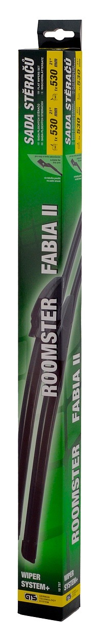 Tato sada stěračů je vhodná pro vozy Škoda FABIA II, ale i další vozy (viz tabulka použití). Kvalitní pružný člen plochého stěrače zajišťuje stejnoměrný tlak grafitového břitu v celé jeho délce, což zamezuje rozmazávání nečistot a vytváření pruhů.