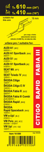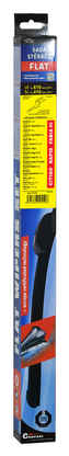 Sada dvou plochých stěračů FLAT (řidič + spolujezdec) se speciálním uchycením. Délky stěračů a systém uchycení na ramínko jsou přizpůsobeny vybraným vozům (viz tabulka použití).