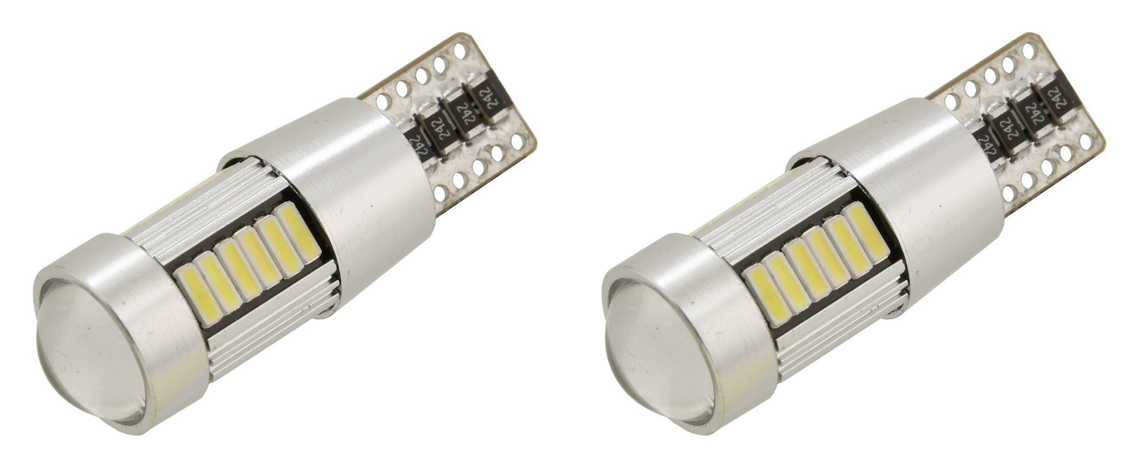 Vysocesvítivé čipové SMD LED diody s optickou čočkou a paticí klasické automobilové žárovky - nízká spotřeba proudu.