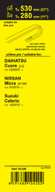 Sada dvou plochých stěračů FLAT (řidič + spolujezdec) se speciálním uchycením. Délky stěračů a systém uchycení na ramínko jsou přizpůsobeny vybraným vozům (viz tabulka použití).Vysoce kvalitní pružný člen plochého stěrače zajišťuje stejnoměrný tlak grafitového břitu v celé jeho délce, což...