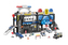 Policejní stanice přenosná. Rozměry 56x18x23 cm. Světelné a zvukové efekty. Aktivace tlačítkem na modrém panelu. 3xAG13 baterie součástí. Součástí 2 auta s volnými koly, mnoho příslušenství (dopravní značky, hasičský přístroj, myčka, čerpací stanice, diagnostika a další).