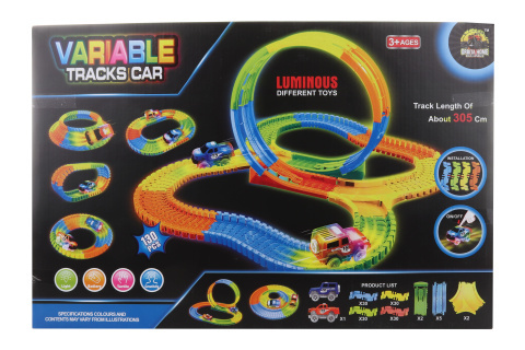 Plastová dráha s autíčkem, které po vložení baterií svítí a jezdí. Napájení na 2 AA baterie (nejsou součástí). Sada obsahuje celkem 156 dílů. Rozměry balení cca 48,5 x 32 x 7,5 cm. Věk 3+ prečítať celé