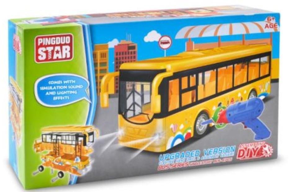 W ZESTAWIE: 41 ELEMENTÓW DO SKRĘCENIA AUTOBUSU, WKRĘTARKA NA BATERIE, WYM. OPK: 36 X 21 X 12 CM., 6+ prečítať celé