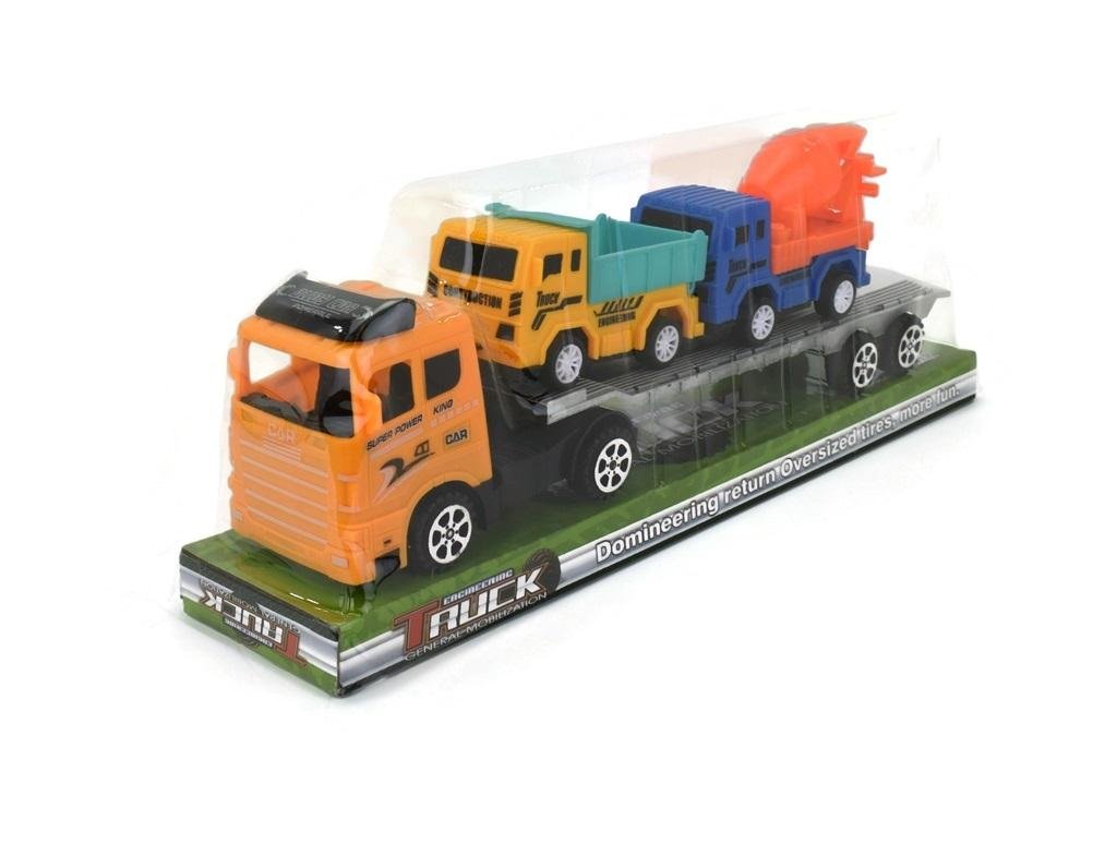 Ciężarówka z lawetą dwupoziomową to masa zabawy dla każdego dziecka. Lawetę można wykorzystać do przewozu ratunkowych autek z zestawu lub innych pojazdów. Lawetę można odczepić od ciężarówki, a górna rampa i tylna klapa jest rozkładana, tak aby górne autka mogły swobodnie zjechać. Opakowanie typu Window Box ułatwia zapoznanie się z funkcjami zabawki.
