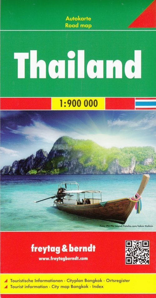 Kromě jasného designu obsahuje silniční mapa Thajska 1:900 000 mnoho dalších informací, jako je stav silnic, památky, kempy a mapa centra města. Rychlou orientaci umožňuje i rozsáhlý lokační index. Podrobnosti: Turistické informace, mapa města Bangkok, rejstřík míst, oboustranný; Automapy freytag & berndt jsou dostupné pro mnoho zemí a regionů po celém světě.