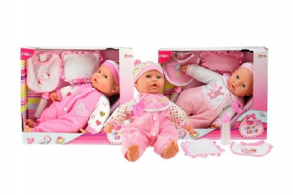 Panenka miminko s lahví a bryndáčkem měkké tělo plast 36cm, 4 druhy (1ks v krabici)