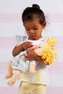 Táto plyšová bábika vyzerá ako malá blondínka s dvoma copy, čo jej dodáva veselý a prívetivý výraz. Je veľmi príjemná na dotyk a jej detaily, ako sú viditeľné prsty a pupok, ju robia ešte realistickejšou a atraktívnejšou. Výška 38 cm je ideálna pre malé ručičky, takže ju deti ľahko držia a nosia kamkoľvek so sebou.