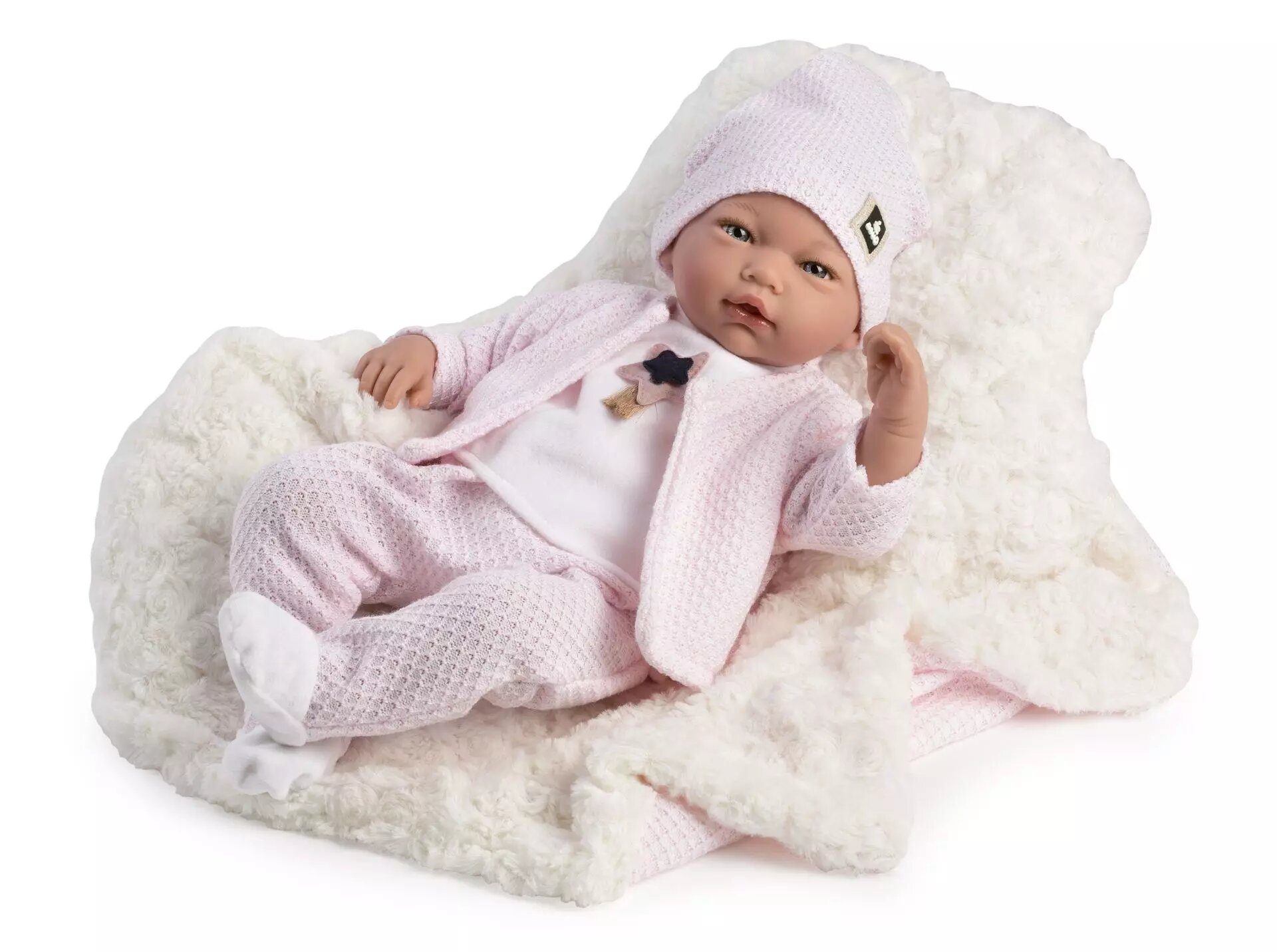 Guca 10219 LUCIA - realistická panenka miminko se zvuky a měkkým látkovým tělem - 46 cm