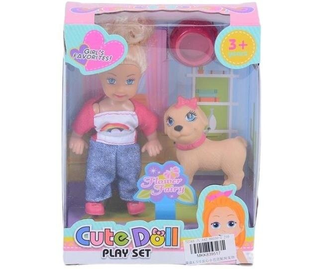 Podaruj swojej małej księżniczce magiczny świat zabawy z zestawem "Cute Doll Play Set"! Ten uroczy komplet zawiera małą, ale pełną uroku lalkę z blond włosami i niebieskimi oczami, ubraną w stylowy top z tęczą i dżinsowe spodenki. Towarzyszy jej wierny przyjaciel - słodki, beżowy piesek z różową...