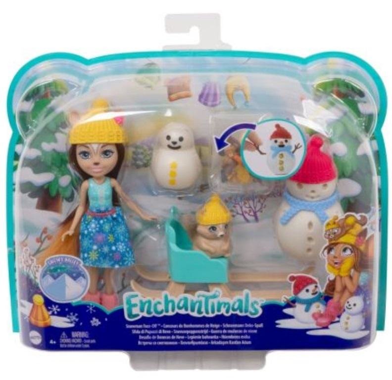 Ulep bałwana razem z wiewiórką Sharlotte i jej małym przyjacielem Orzeszkiem Fani Enchantimals mogą odgrywać klasyczne, zimowe scenki w zupełnie magiczny sposób. W zestawie znajduje się laleczka wiewiórka Sharlotte, jej mały przyjaciel Orzeszek, sanki i dwa bałwanki, jeden mniejszy, drugi większy. Lalka ubrana jest w strój typowo zimowy, na głowie ma ciepłą czapkę, a na rękach grube rękawiczki, które może zdjąć.