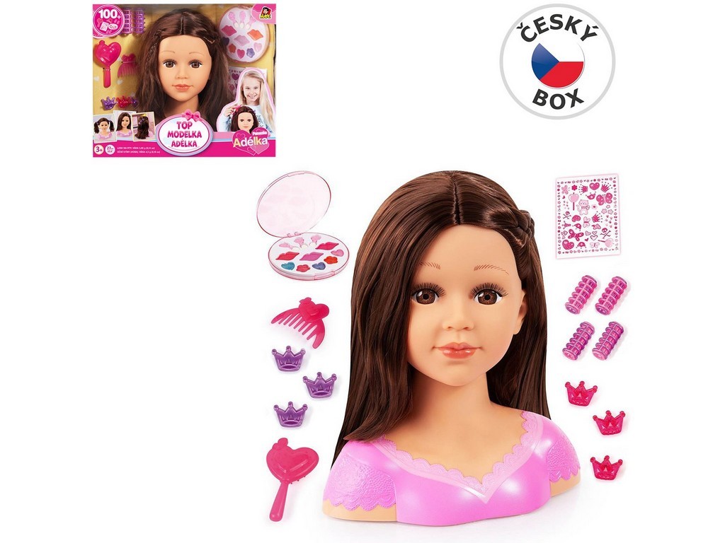 Krásná česací hlava s příslušenstvím z kolekce Adélka. Vytvoř panence jakýkoliv účes podle své fantazie s pomocí této sady. Ozdobit můžeš i sebe.Rozměr: 24 x 13,5 x 27 cmDoporučený věk: 3 + prečítať celé
