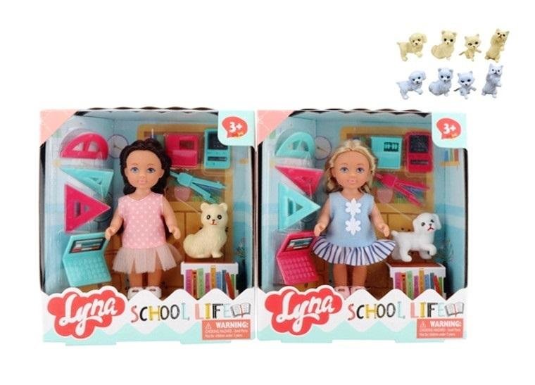 Urocza laleczka w szkole z pieskiem. Do lalki dołączono takie akcesoria jak: komputer, kalkulator, liczydło, kątomierz, ekierka, cyrkiel. Produkt występuje w kilku wersjach kolorystycznych, wybierany losowo. Cena dotyczy jednej sztuki. Zabawka dostępna dla dzieci powyżej 3 lat. Podane wymiary są wymiarami opakowania. Zabawka zapakowana w kartonowe opakowanie z przezroczystym okienkiem.