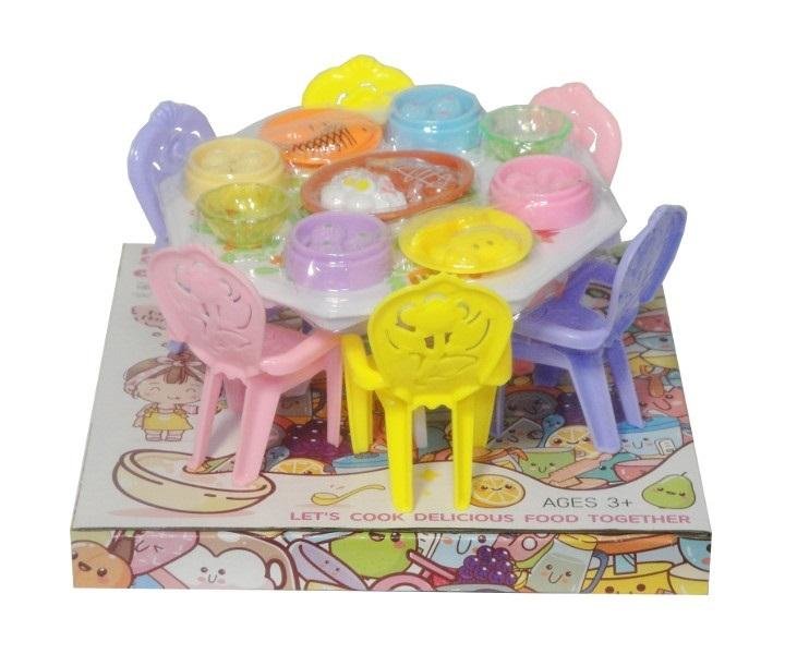 Plastikowe mebelki dla lalek w pastelowych kolorach z zestawem gotowym do zorganizowania uroczystej kolacji.#&Produkt w opakowaniu z kartonową podstawką z przezroczystym kloszem.#&Podane wymiary są wymiarami zabawki w opakowaniu. #&Produkt dla dzieci od 3 lat. prečítať celé