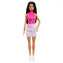 Ta lalka Barbie(R) Fashionistas ma na sobie ubranko inspirowane jej rockową stylizacją z 1986 r.: różową koszulkę z nadrukiem gwiazdek i opalizującą spódniczkę z falbanką.Modne białe buciki i kolorowa bransoletka świetnie zgrywają się z resztą stroju.Czarne włosy lalki są ułożone w prostą fryzurę...