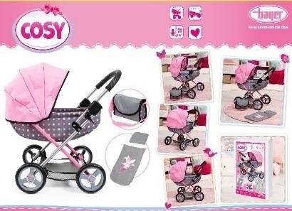 Wózek dla lalek COSY ma uroczy design i zapewnia slodkie sny dla lalki dzieki dolaczonemu przytulnemu kocykowi i pasujacej poduszce. Wózek oferuje miejsce dla lalek o wielkosci do 46 cm. Nowoczesne, dopasowane kolorystycznie kola oraz uroczy daszek przeciwsloneczny nadaja wózkowi piekny wyglad....