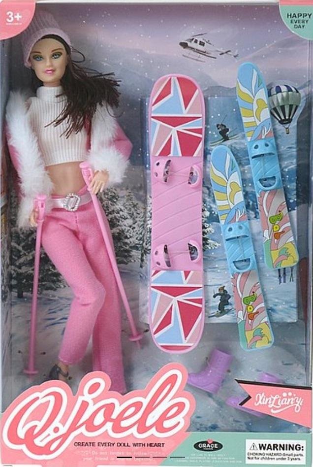 Lalka 29cm z deską snowboardową i nartami; 32,5x22x6cm, W/B prečítať celé