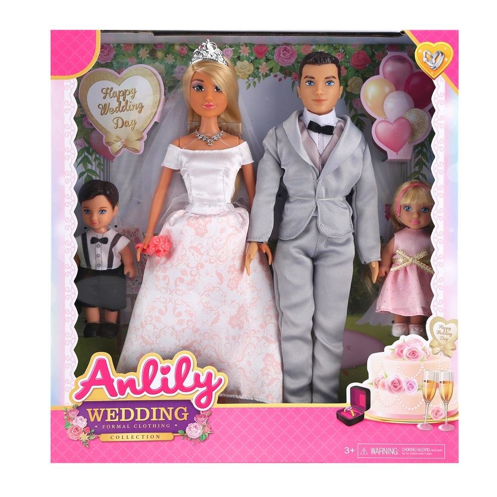 Zestaw 4 lalek: zestaw ślubny - panna młoda (29 cm), pan młody (29 cm), dziewczynka, chłopiec Wymiary opakowania: 30.2 x 5 x 32.2 cm prečítať celé