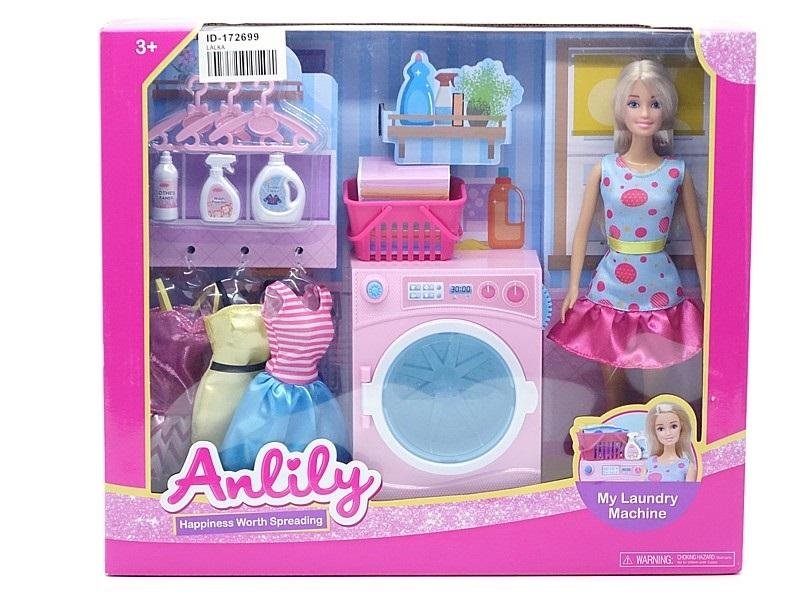 Zestaw lalka 29cm w pralni, pralka, zestaw ubrań, przybory do prania; 38x32x8cm, W/B prečítať celé