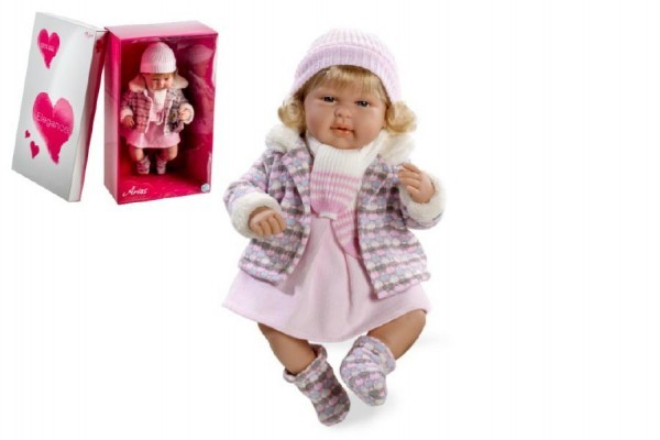 Panenka značky Arias se po vyndání dudlíku směje a říká "mama, papa" dokud jí nevrátíte dudlík zpátky do pusinky. Panenka příjemně voní a má měkké tělo, 50 cm, na baterie. Panenka je na zádech zajištěna pojistkou proti zvuku. prečítať celé