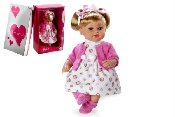Panenka značky Arias se po zmáčknutí bříška směje a říká "mama, papa" 3x po sobě. Panenka příjemně voní a má měkké tělo, 33 cm, na baterie, v dárkové krabici. Panenka je na zádech zajištěna pojistkou proti zvuku. prečítať celé
