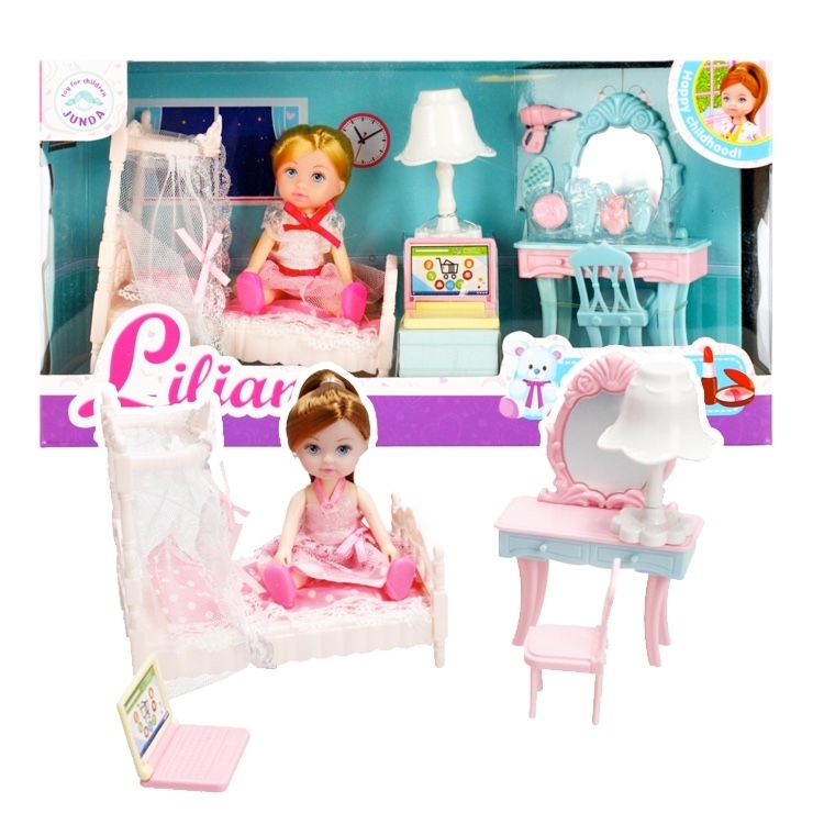 Panenka Lilian s doplňky. Sada obsahuje: panenku, postýlku, malý toaletní stolek, noční lampu, notebook. Panenka je dostupná ve dvou barvách vlasů: blond, červená. Rozměry produktu, panenka (D x V x H) [cm]: 5x12x3, rozměry balení (D x V x H) [cm]: 30x16x9, nevyžaduje baterie. Výrobek je určen...