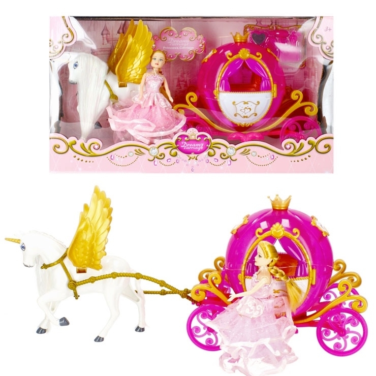Kočár má světelné a zvukové efekty. Kůň Pegas má pohyblivá křídla, princezna má dlouhé společenské šaty, soupravu v růžové a zlaté barvě.