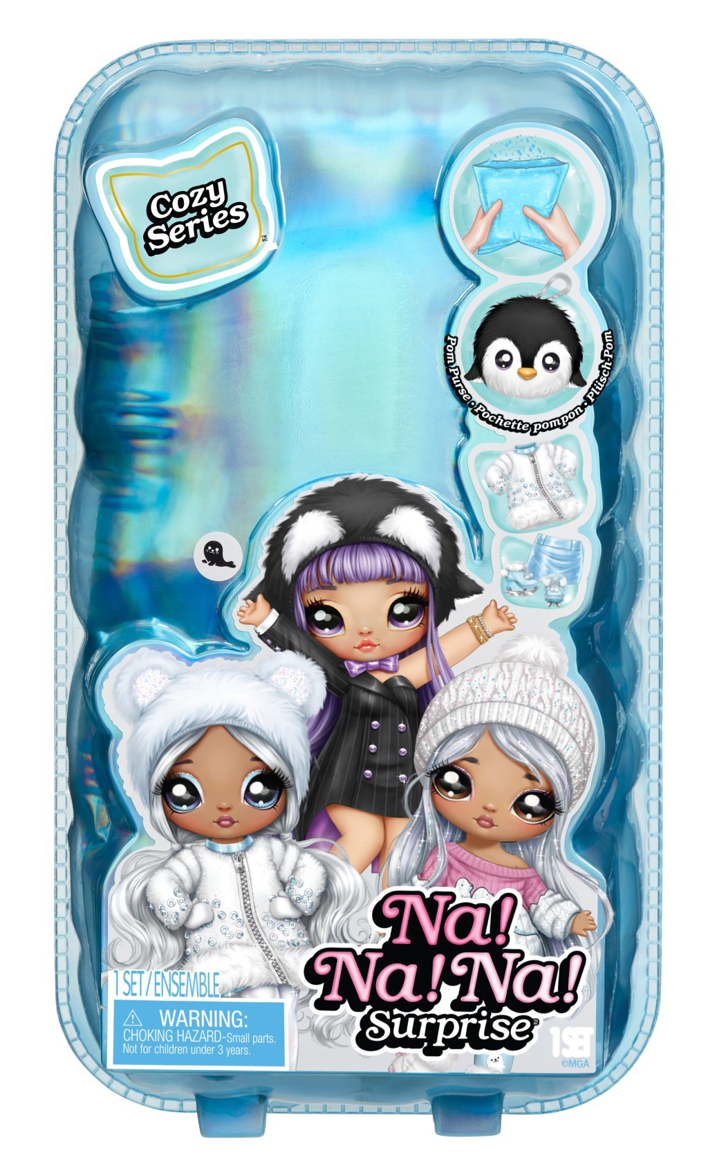 Zachumlej se s Na! Na! Na! Surprise Zimní panenkou. Balónek s konfetamise postará o výbuch zábavy při rozbalování. Nedá se poznat, kterápostavička se v balení skrývá, ale pro ty, kdo to chtějí vědět, je naobale nápověda. Zimní panenky inspirované zimními zvířátky jsou měkkéa tvarovatelné, mají...