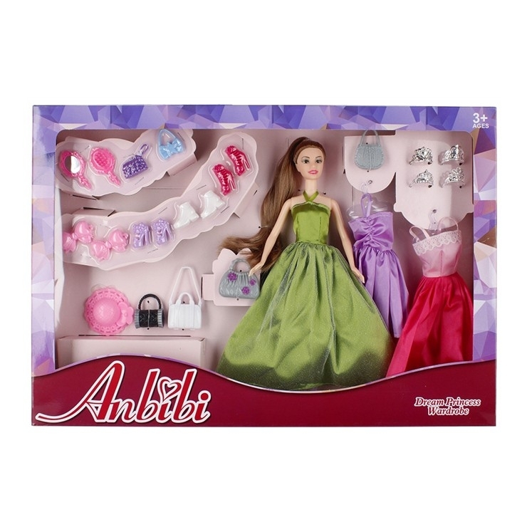 Obsah setu: panenka, 2 x výměna oblečení, 6 x kabelka, 3 páry bot, 2 x manžetové knoflíčky, zrcátko a kartáč, klobouk, 4 x diadém. prečítať celé