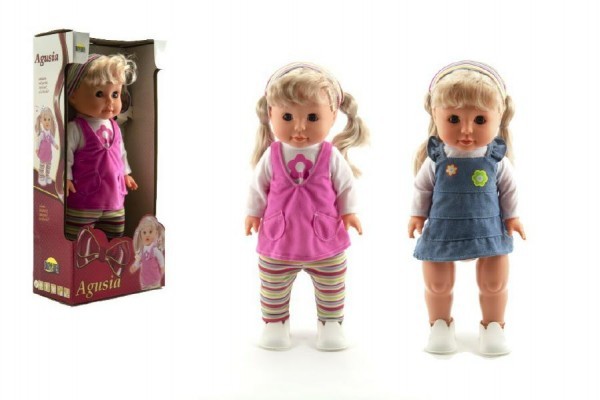 Panenka Agusia chodící zpívající na baterie plast 40 cm pevné tělo, 2 druhy (1ks v krabici)