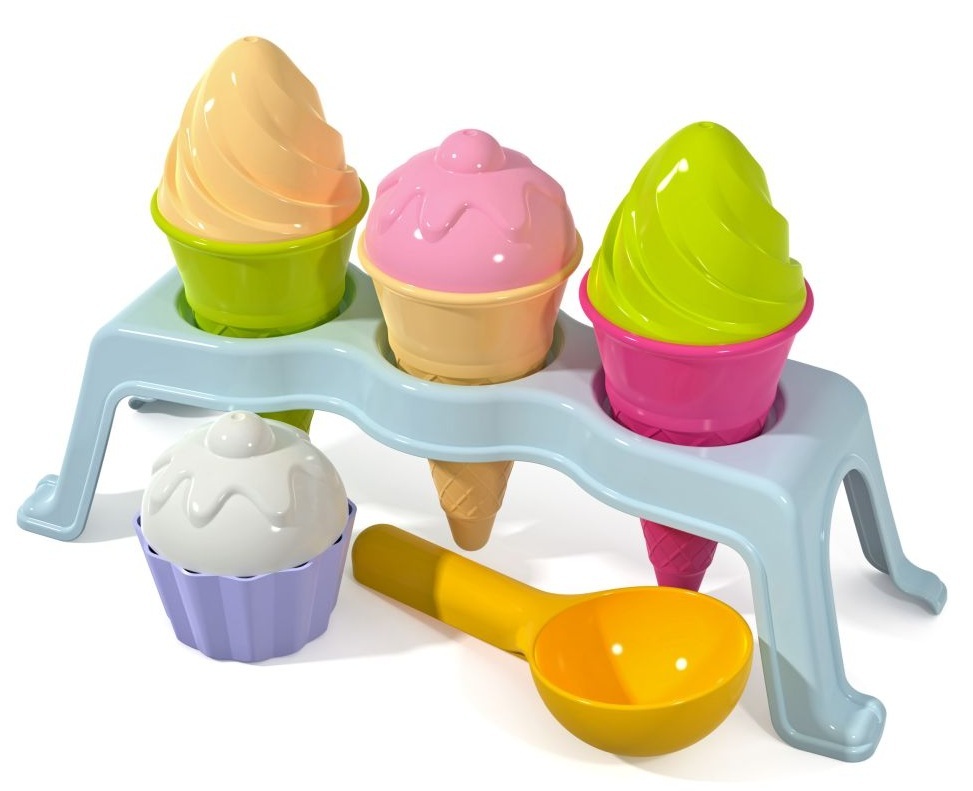 10dílná sada tvořítek na písek - zmrzlina ve stojánku. Vyrobeno v Itálii z kvalitních plastů. Obsahuje tři kornoutky se zmrzlinou, jedno tvořítko na dortík s dortíkem, kopečkovač na zmrzlinu a stojánek. Baleno v síťce o rozměrech 9,5 cm x 29 cm x 17 cm (š x d x v). Váha: 0,153 kg. Doporučený věk...