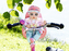 Baby Annabell jezdí moc ráda na kole se svojí malou maminkou a tatínkem. Okolí poznává z bezpečí vlastní sedačky na kolo. Na výlety má připraven skvělý cyklistický obleček. Základem je bílé tričko s obrázkem ovečky, jak jinak než jedoucí na kole. Tričko doplňují tyrkysové kalhoty v pase ozdobené...