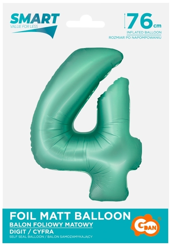 Balon foliowy Smart, Cyfra 4, miętowa matowa, 76 cm, GoDan