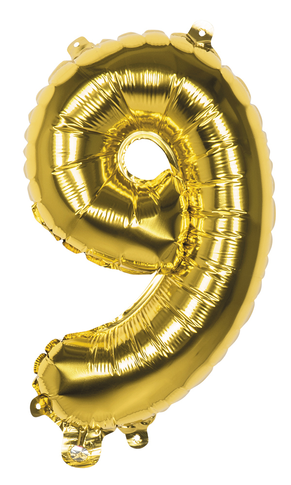 Foliové čislo 9. Materiál: PA,PE, hliník Barva: zlatá Výška: 86 cm prečítať celé