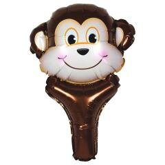 Balon foliowy z uchwytem w kształcie zwierzątek. Balon foliowy do dekoracji przyjęć dla dzieci, kinderbali. Balon może służyć jako element do zabawy, odgrywania teatrzyków pod okiem dorosłego opiekuna. Balon do napełniania powietrzem w kształcie małpki o wymiarze 41 cm przed napompowaniem oraz 35 cm po napompowaniu.