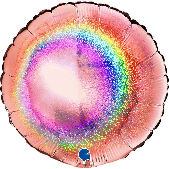 Nafukovací balónek kulatý 46cm holografický s glitry růžový světle - Grabo