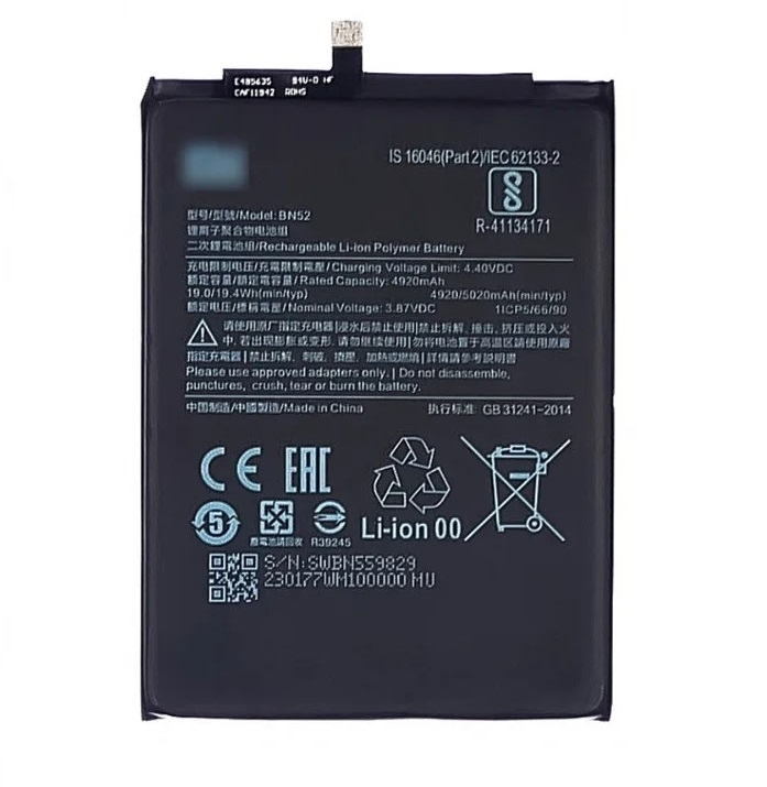 Baterie Xiaomi BN52 4920mAh - Redmi NOTE 9 PRO - bulk (nekompatibilní s BN53)