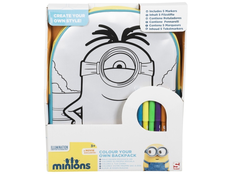 Pomocí pěti fixů si můžete Minioně vybarvit, jak se vám zlíbí. Jakmile budete hotovi, budete mít barevný batoh, do kterého si můžete uložit všechny věci do práce i na hraní.