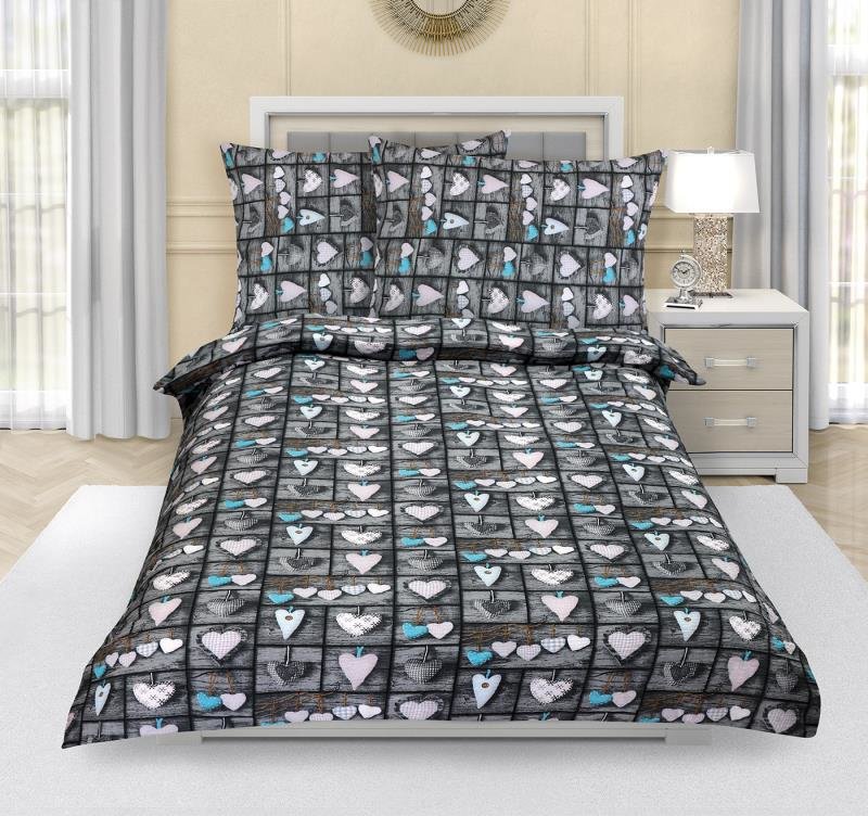 Povlečení bavlněné - patchwork srdce šedé - tyrkysové - 140x200, 70x90
