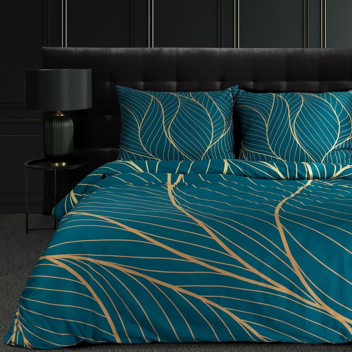Povlečení LUXOR III. tyrkysová/zlatá 100% saténová bavlna 1x 200x220 cm, 2x povlak 70x80 cm francouzské povlečení MyBestHome