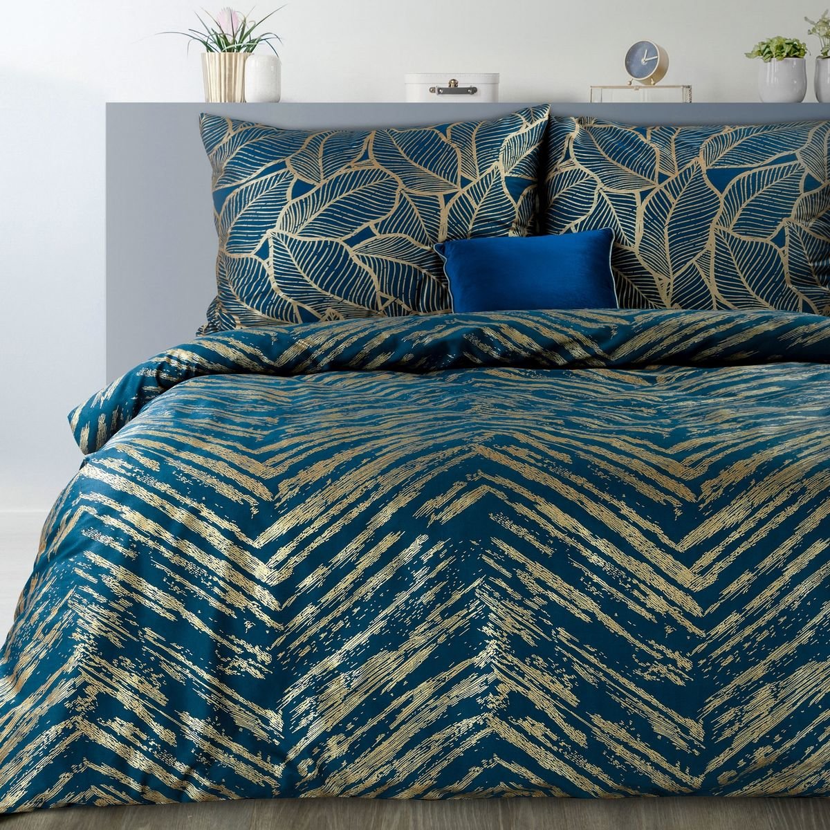 Povlečení METALICO II. modrá 100% saténová bavlna 1x 200x220 cm, 2x povlak 70x80 cm francouzské povlečení MyBestHome
