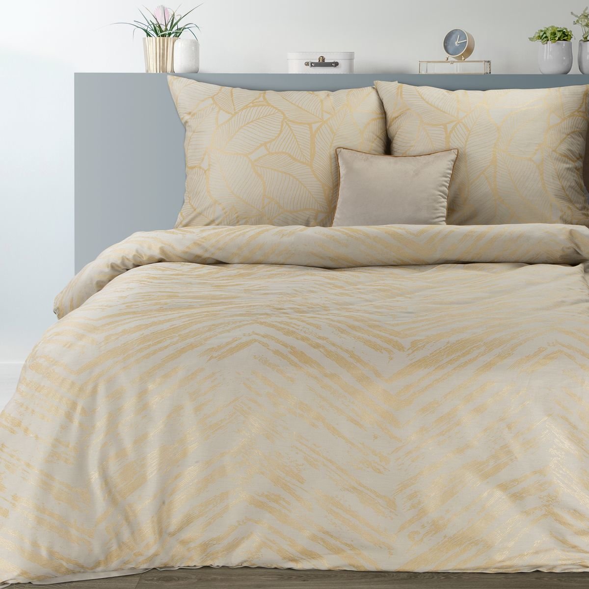 Povlečení METALICO II. béžová 100% saténová bavlna 1x 200x220 cm, 2x povlak 70x80 cm francouzské povlečení MyBestHome