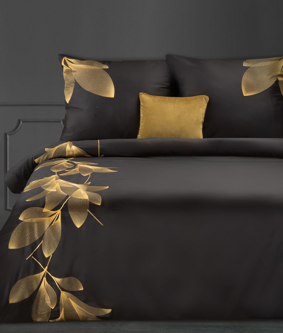 Povlečení REINA černá 100% saténová bavlna 1x 200x220 cm, 2x povlak 70x80 cm francouzské povlečení MyBestHome