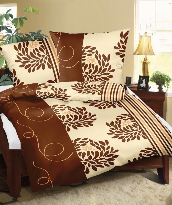 Povlečení bavlněné - hnědá chryzantéma - 140x220, 70x90