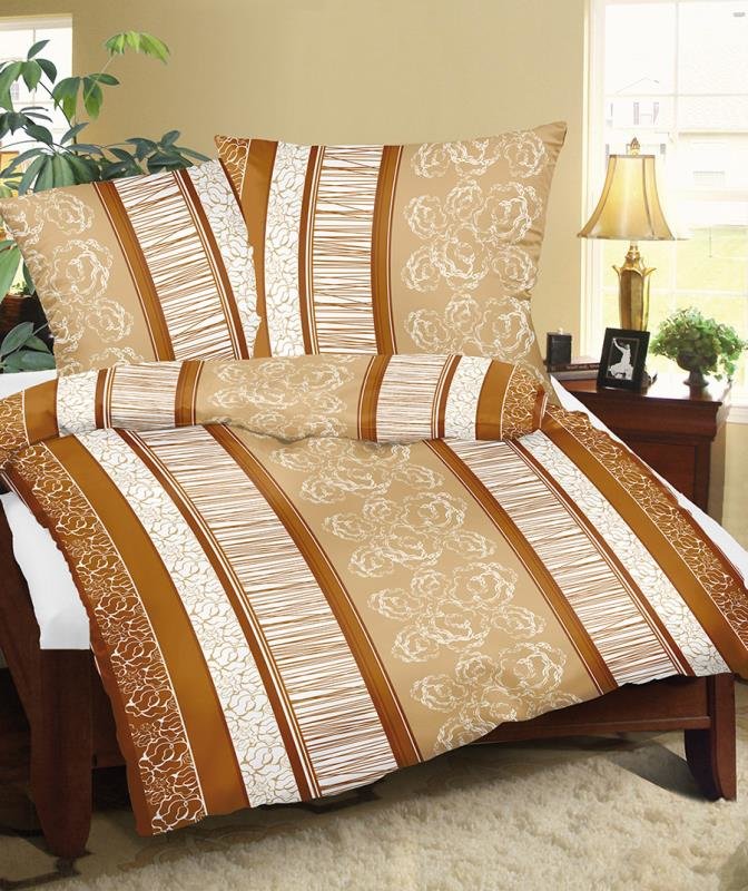 Povlečení bavlněné - béžovohnědý pruh - 140x220, 70x90